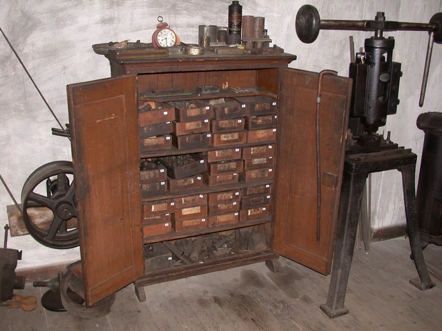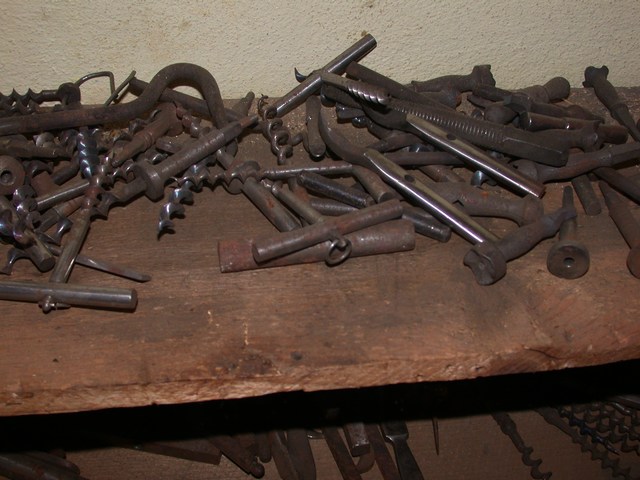 Unter den Gästen befanden sich neben Teilnehmern aus Politik, Wirtschaft und Nachbarschaft auch die Nachfahren von Richard Recknagel und die Mitglieder des Vereins Korkenzieherfreunde Im Vordergrund die Leiterin des Metallhandwerksmuseums, Veronika Jung, im Gespräch mit ihrem Kollegen aus Zella-Mehlis, Lutz von Nordheim Mit der Entfachung des Schiedefeuers wurde die Werkstatt stilvoll der neuen Bestimmung übergeben Die wuchtigen Rahmen zeugen von den gewaltigen Kräften der Schmiedearbeiten Mit Transmissionen wurden die Antriebskräfte an den verschiedenen Stellen der Werkstatt dem Produktionsprozess zur Verfügung gestellt Wo kein Motorantrieb die Kraft aufbrachte, mussten Schwungmassen und Spindelmechaniken eingesetzt werden Beeindruckende Stimmungsbilder aus frühen Zeiten Mit geteilten Gesenkhämmern wurden mit maschineller Unterstützung die Krätzer geformt Hier wurde alles abgelegt: Muster- und Fehlstücke, Werk- und Messzeuge, Brillen und Geldbörsen Richard Recknagel hatte alle Fertigunsgänge zur Herstellung eines Korkenziehers unter einem Dach vereint. Der Vorläufer einer modernen Fließbandfertigung Etwas von dem was hier in den Regalen liegt hätte jeder Korkenzieherfreund gerne in seiner Sammlung Bei genauem Hinsehen entdeckt man viele Details bekannter Schätze Dieses Meiserstück trägt das Datum 1928 Ein übergroßes Messemodell aus DREKO-Zeiten Sehr seltenes Exemplar eines Monopol 117 mit Kugellager und Blechglocke