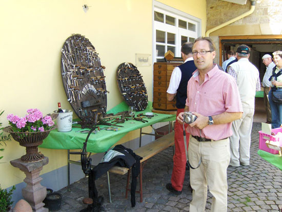 Schmuckstücke seiner Sammlung präsentierte Gerd ansprechend auf alten Faßböden montiert