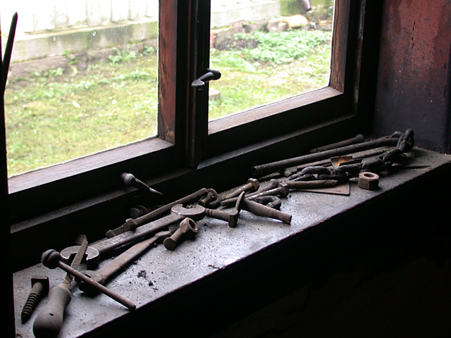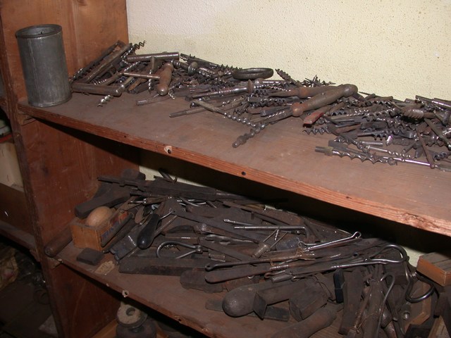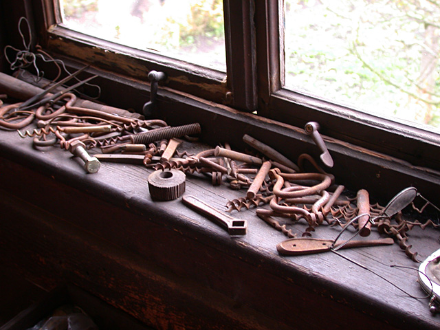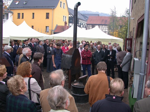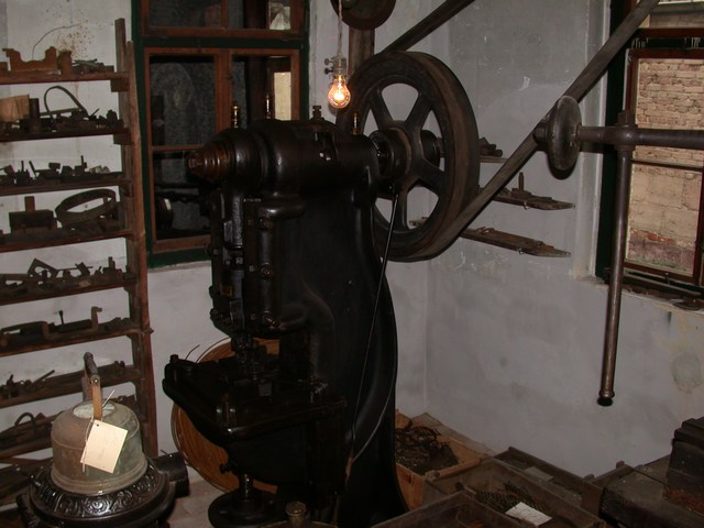 Unter den Gästen befanden sich neben Teilnehmern aus Politik, Wirtschaft und Nachbarschaft auch die Nachfahren von Richard Recknagel und die Mitglieder des Vereins Korkenzieherfreunde Im Vordergrund die Leiterin des Metallhandwerksmuseums, Veronika Jung, im Gespräch mit ihrem Kollegen aus Zella-Mehlis, Lutz von Nordheim Mit der Entfachung des Schiedefeuers wurde die Werkstatt stilvoll der neuen Bestimmung übergeben Die wuchtigen Rahmen zeugen von den gewaltigen Kräften der Schmiedearbeiten Mit Transmissionen wurden die Antriebskräfte an den verschiedenen Stellen der Werkstatt dem Produktionsprozess zur Verfügung gestellt Wo kein Motorantrieb die Kraft aufbrachte, mussten Schwungmassen und Spindelmechaniken eingesetzt werden Beeindruckende Stimmungsbilder aus frühen Zeiten Mit geteilten Gesenkhämmern wurden mit maschineller Unterstützung die Krätzer geformt Hier wurde alles abgelegt: Muster- und Fehlstücke, Werk- und Messzeuge, Brillen und Geldbörsen Richard Recknagel hatte alle Fertigunsgänge zur Herstellung eines Korkenziehers unter einem Dach vereint. Der Vorläufer einer modernen Fließbandfertigung Etwas von dem was hier in den Regalen liegt hätte jeder Korkenzieherfreund gerne in seiner Sammlung Bei genauem Hinsehen entdeckt man viele Details bekannter Schätze Dieses Meiserstück trägt das Datum 1928 Ein übergroßes Messemodell aus DREKO-Zeiten Sehr seltenes Exemplar eines Monopol 117 mit Kugellager und Blechglocke