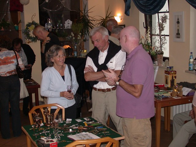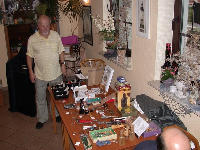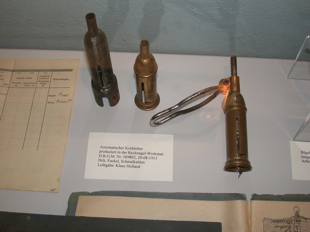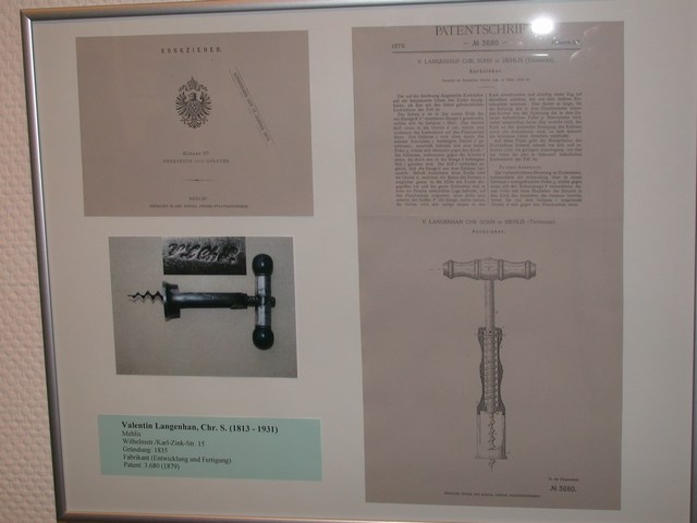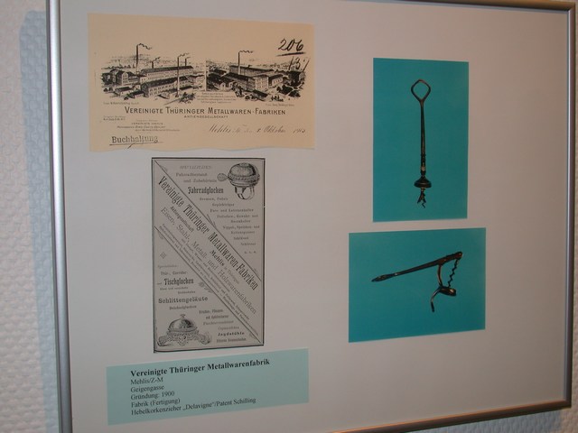Einen weiteren Höhepunkt erlebten wir mit der Eröffnung einer Sonderausstellung Korkenzieher im Museum in Zella-Mehlis. Hier hatte der Museumsleiter Lutz von Nordheim mit Unterstützung von Reinhold Berndt und Stephan Trunetz Korkenzieher und historische Informationen aus der in der Region zusammen getragen und eindrucksvoll präsentiert. Lutz von Nordheim führte durch die in dieser Art und Vollständigkeit bisher einmalige Dokumentation von Familien und Firmen aus der Frühzeit der Korkenzieherproduktion in der Thüringer Region Valentin Langenhan, ein Sohn aus Mehlis Der Delavigne-Korkenzieher ist unter der Bezeichnung "Schilling-Patent" von den Vereinigten Thüringer Metallwaren Fabriken hergestellt worden Diese Stücke aus der Fertigung von Ernst Demmler sind zum Teil Kopien von ausländischen Patenten Ein solches Exemplar ist als persönlicher Korkenzieher von Heinrich Ehrhardt bekannt Sehr seltenes Exemplar eines Thüringer Küchengerätes aus der Sammlung von Reinhold Berndt