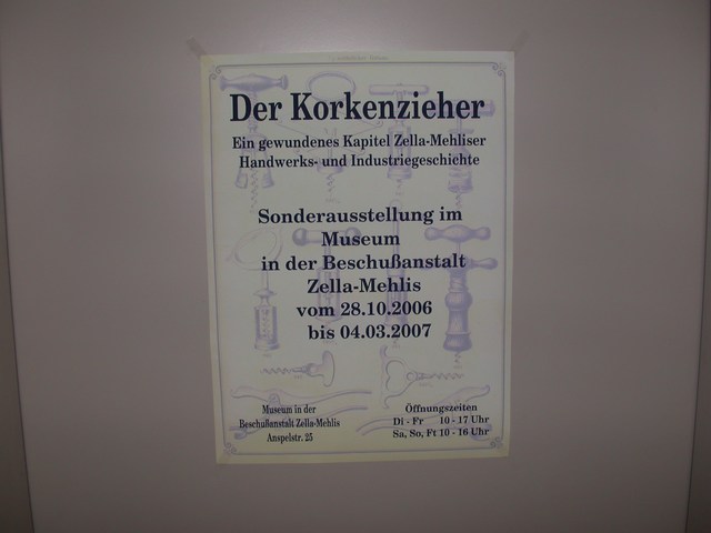 Beim Jahrestreffen am 27. und 28.10.2006 feierte der Verein Korkenzieherfreunde sein 10-jähriges Bestehen im Haselgrund in Thüringen. Seit der Gründung in Steinbach-Hallenberg ist der Verein der Region und den Museen in Steinbach-Hallenberg und Zella-Mehlis besonders verbunden. Beide Museen waren mit bemerkenswerten Aktionen an der Jubiläumsveranstaltung beteiligt. Das Metallhandwerksmuseum in Steinbach-Hallenberg konnte am 27.10.2006 pünktlich die alte Werkstatt von Richard Recknagel am neuen Standort wieder eröffnen. Im Mai 2005 war das komplette Haus in einer spektakulären Aktion ca. 1200 m über die Straße transportiert und auf dem Gelände des Museums abgesezt worden. In akribischer Kleinarbeit wurden seit dem die gesamte Inneneinrichtung und sämtliche Werkzeuge und Materialien wieder an ihren alten Platz gebracht und vermitteln einen bedrückendes Bild des kargen Arbeitsalltages aus frühen Zeiten. Unter großer Anteilnahme von Honoratioren aus Politik und Wirtschaft und vielen Gästen wurde die alte Werkstatt von Richard Recknagel am neuen Standort wieder eröffnet.