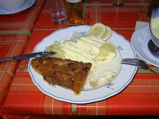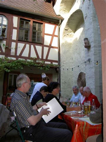 Im Schutzes eines Wehrganges aus dem 16ten Jahrhundert traf man sich zum Abendessen Regionale Küche köstlich zubereitet
