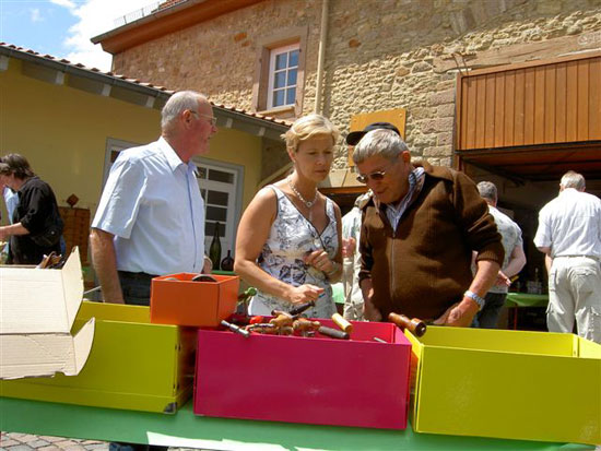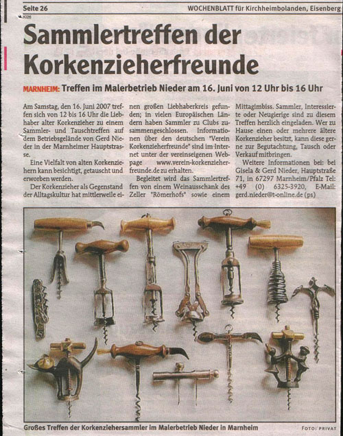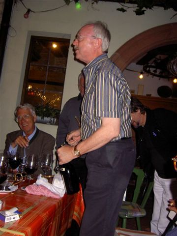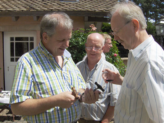 Mit einem alten Rohac-Korkenzieher scheiterte der Webmaster an einem bröseligen Korken. Gegen die Fingerfertigkeit unseres Freundes Ernst Kaeshammer mit einem Federzungen-Zieher hatte der Korken aber keine Chance.