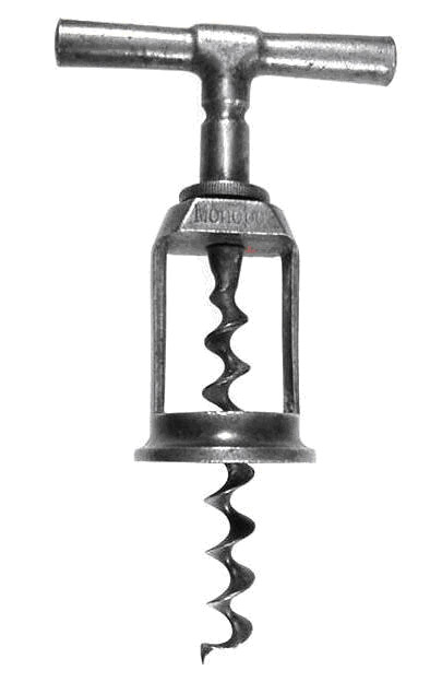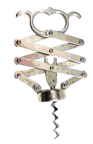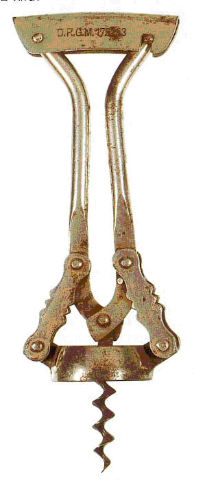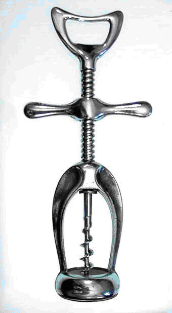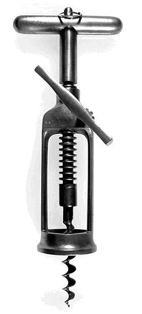 Zweiarmige Hebelkorkenzieher (Funktionsweise: Der Schaft mit samt dem Korken wird mit zwei Hebelarmen angehoben)